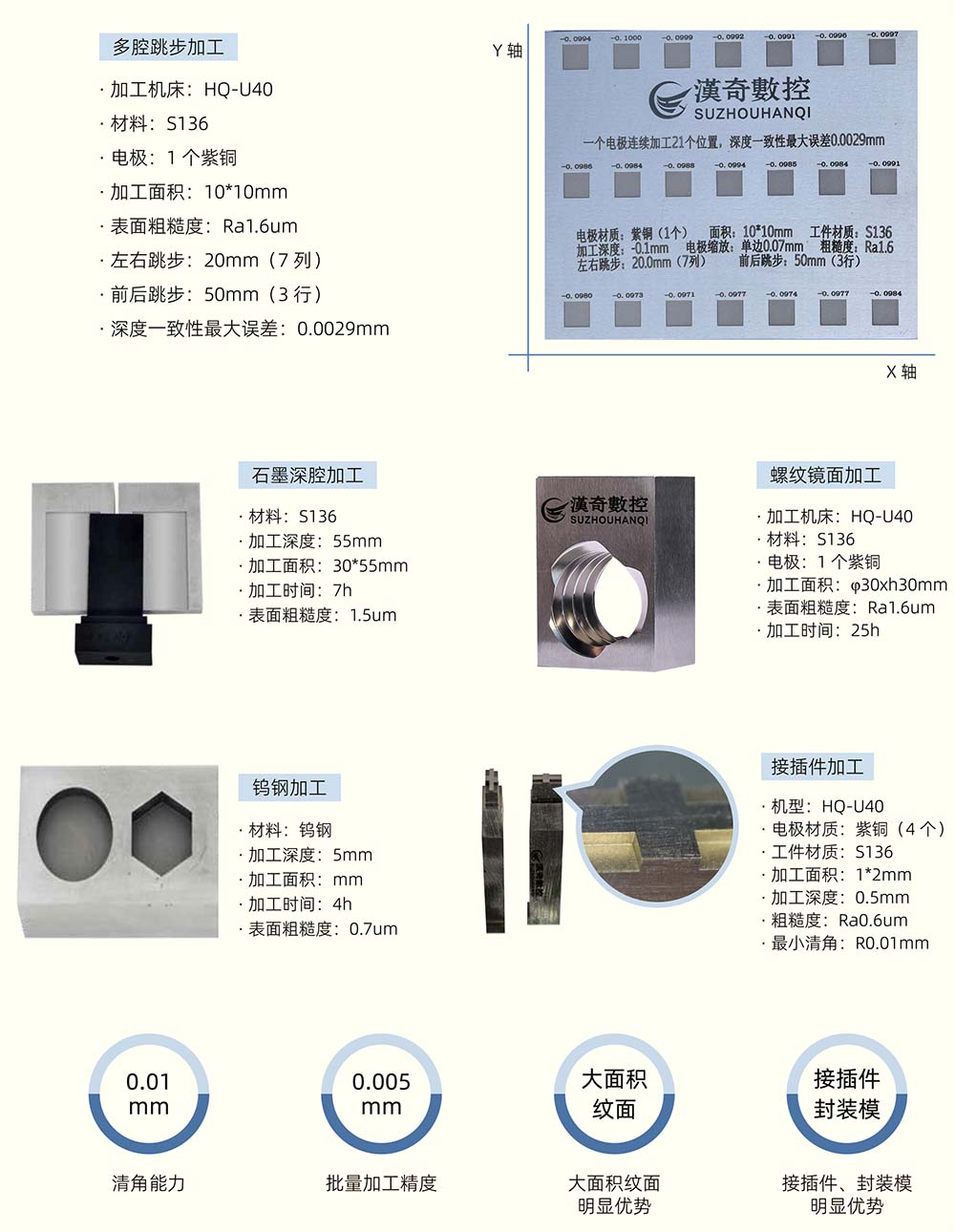 | 適用塑料模、壓鑄模、對(duì)開模、接插件、深腔、深槽等各種模具加工 | ||